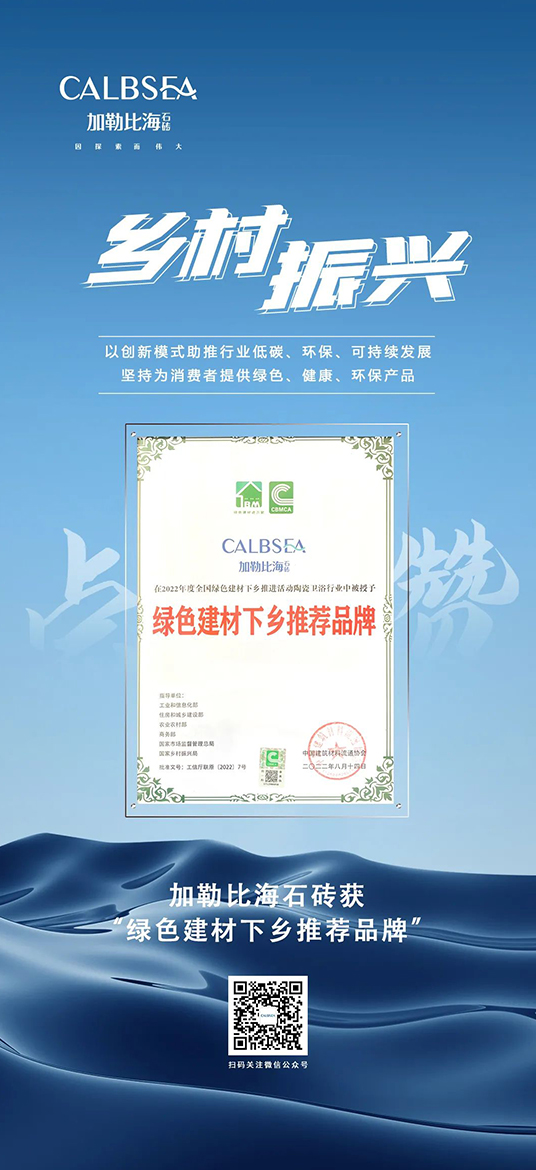 綠色建筑未來|加勒比海石磚獲“綠色建材下鄉(xiāng)推薦品牌”